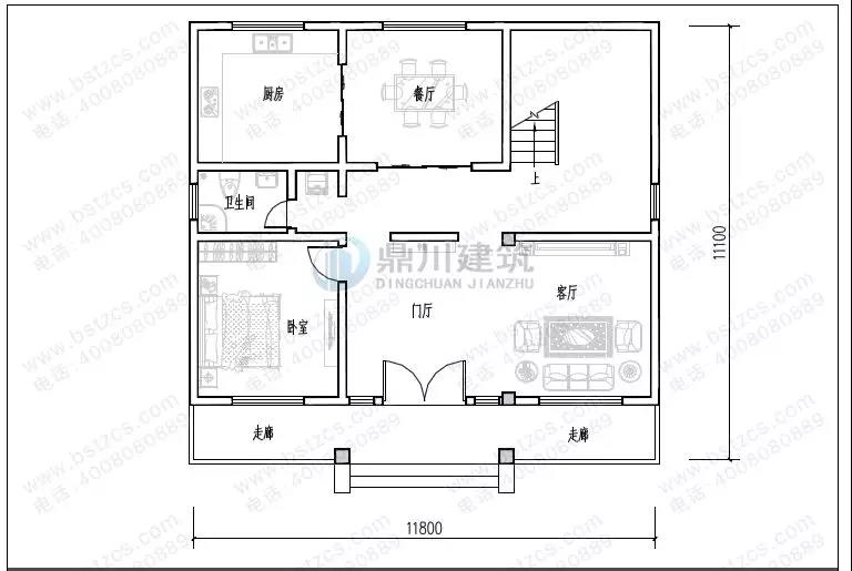 一 層:門廳、客廳、2臥室、廚房、餐廳、衛生間
