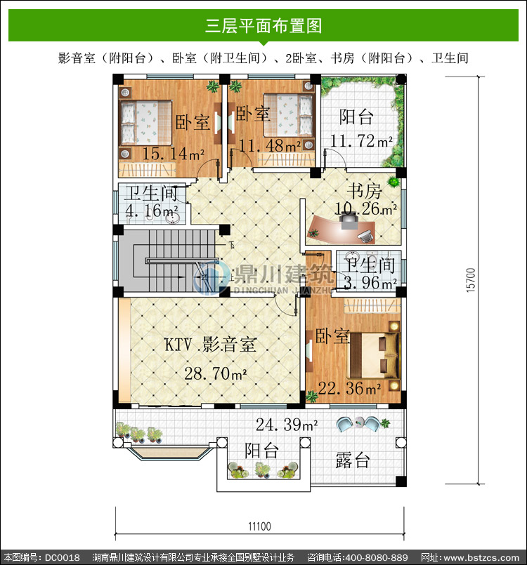 三 層: | 影音室(附陽臺(tái))、臥室(附衛(wèi)生間)、2臥室、書房(附陽臺(tái))、衛(wèi)生間 | |||