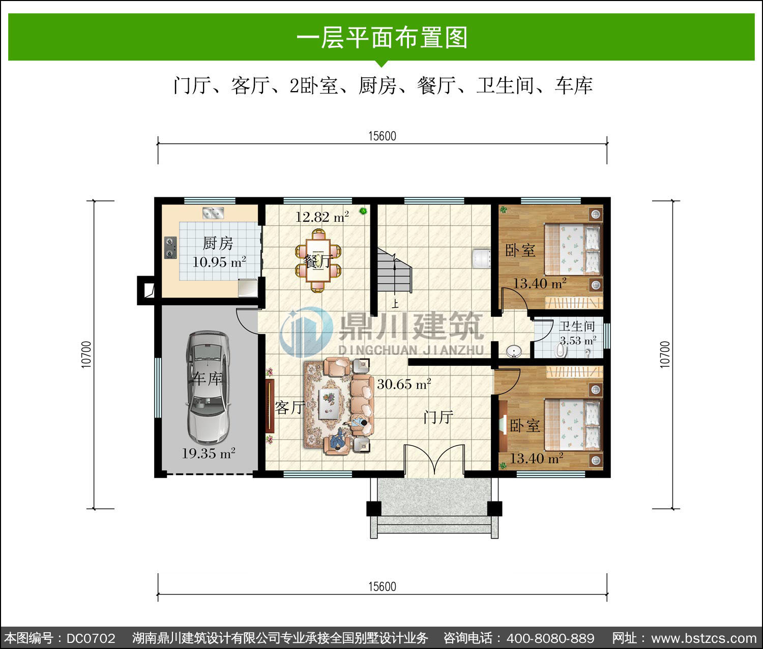 新農村二層帶車庫別墅效果圖及施工圖_農村房屋設計圖紙,鼎川建